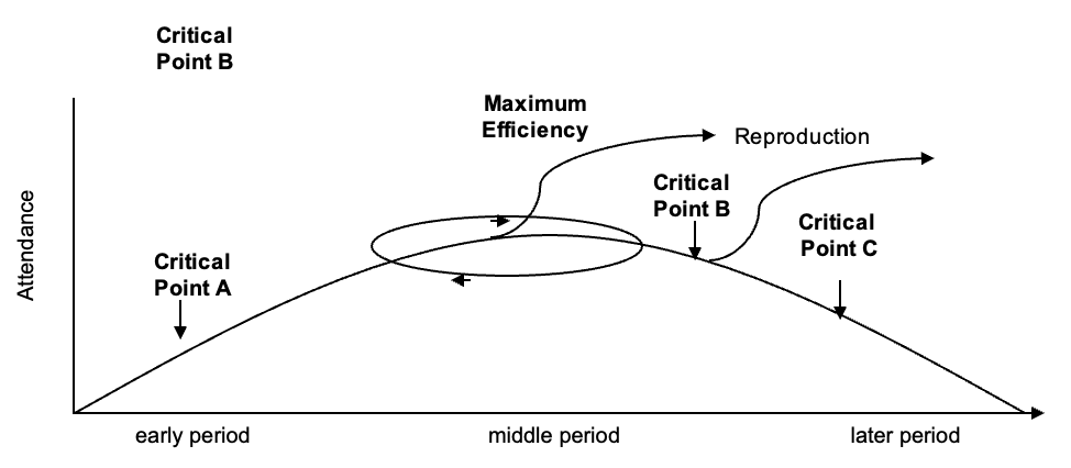 Point C – The church realises that it is in decline however instead of focusing on vision return to the ministries/programmes that were effective at the top of the life cycle.